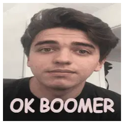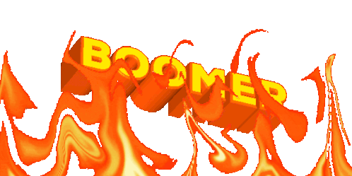 Animated sticker featuring the word 'BOOMER' in bold, fiery orange letters, surrounded by dynamic flames.