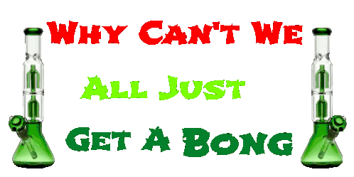Animated sticker featuring two bongs, changing color, with the message 'Why Can't We All Just Get Along?'