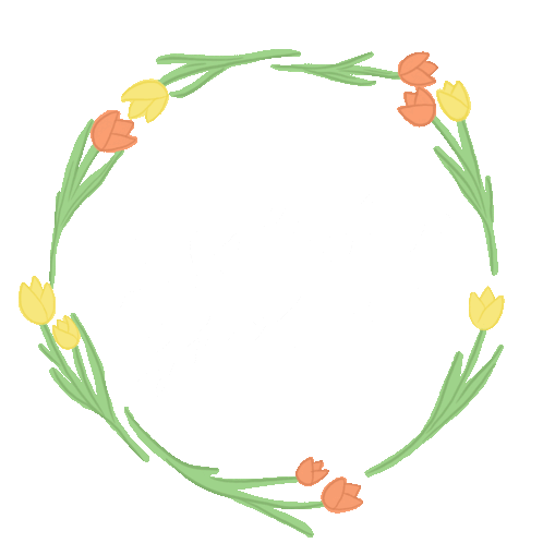 Bonn and Gillian's wedding sticker features a charming circular frame of rotating yellow and orange tulips, perfect for celebrations.
