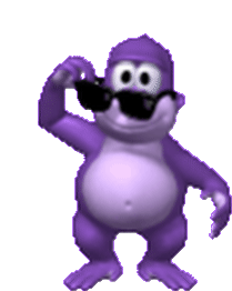Bonzi Buddy, the purple monkey, adjusts his sunglasses with a cool smile, embodying the uwu and swag vibe.
