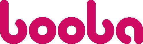 a pink booba logo is against a white background