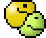 A charming Booba pixel art sticker featuring a yellow and green smiley face with a simple, friendly expression.