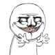 A black and white cartoon character making a funny face with outstretched hands, expressing 'Bóp Bóp Hí Hí'.