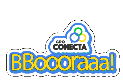 Animated sticker featuring the GPO Conecta logo and the enthusiastic call 'Bora!', encouraging action and connection.