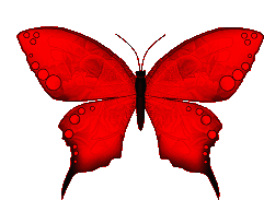 An animated butterfly with red wings and delicate bubbles floating around, creating a beautiful and whimsical effect.
