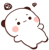 A cute white cartoon panda bear lies on its back, looking bored and tired with a small sigh.
