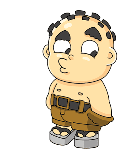 Animated sticker of a bald cartoon man with a sad expression, showing his empty pockets, symbolizing being broke or having no money.