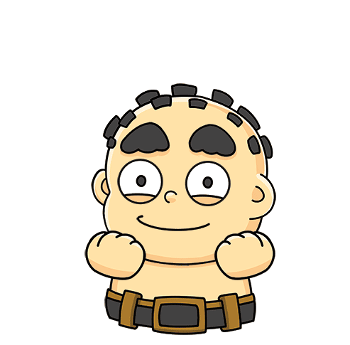 Animated sticker of the Botak character cheering enthusiastically with stars in its eyes and clenched fists.