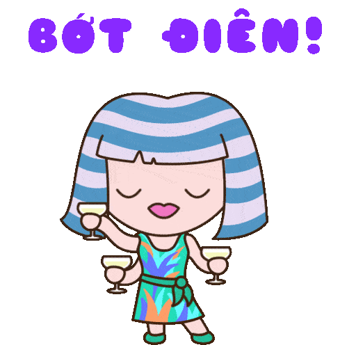 A fun cartoon character with multiple arms holds champagne glasses, winking, with the Vietnamese text 'Bớt Điên!'.