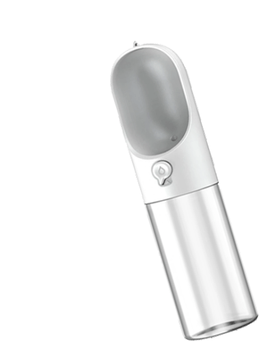 A sleek, portable pet water bottle, white and clear, designed for convenient hydration for dogs and cats on the go.