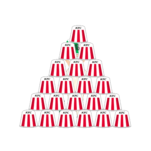 Colonel Sanders, wearing a "Bucket Head" hat, celebrates amidst falling KFC buckets, embodying the spirit of cricket.
