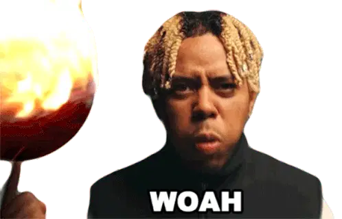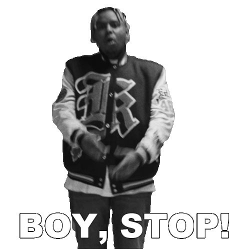 Ybn Cordae in a black and white sticker, gesturing to stop with the caption 'BOY, STOP!'.
