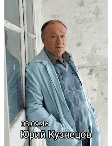 a man in a blue coat is leaning against a wall with the date 03.09.196