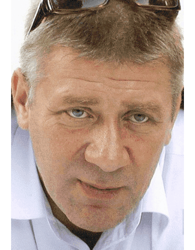 a man wearing sunglasses and a white shirt is smiling