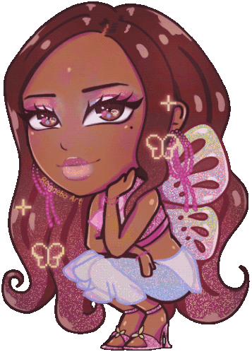 a cartoon drawing of a girl with butterfly wings and the name rogneba art