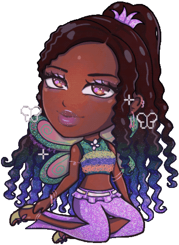 a cartoon drawing of a girl with curly hair and a flower in her hair