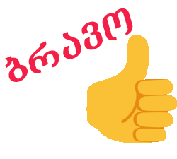 A yellow hand gives a thumbs up with the Georgian word 'ბრავო' (Bravo) in red text.