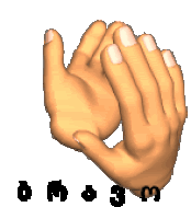 Animated sticker of two hands clapping with Georgian text 'Bravo' and 'Applause' below, expressing approval.