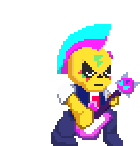 Brawl Stars character Leon in his Shark skin performs a dynamic action, ready for battle.