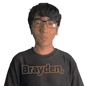 a man wearing glasses and a shirt that says brayden on it