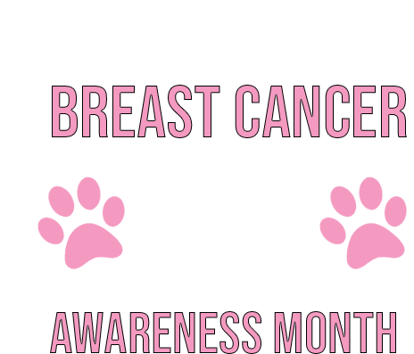 A supportive sticker for Breast Cancer Awareness Month, featuring the text and two pink paw prints.
