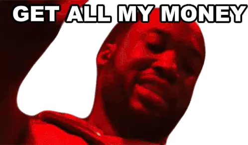 A man enthusiastically throws stacks of cash into the air, creating a 'make it rain' effect.
