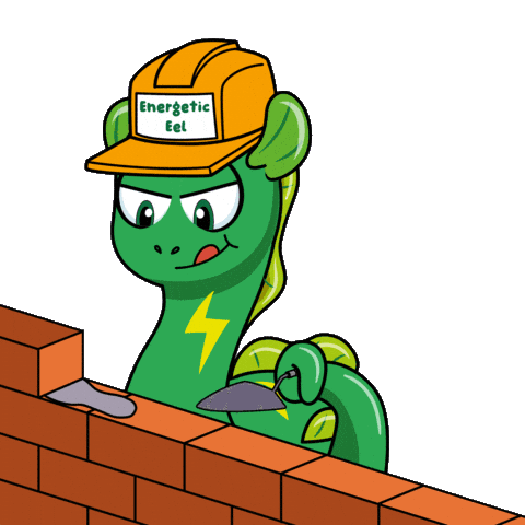 a cartoon of a green snake wearing an energetic eel hat