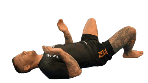 Jordan Preisinger demonstrates a fundamental Brazilian Jiu-Jitsu solo drill, performing the bridge to knees technique with precision.