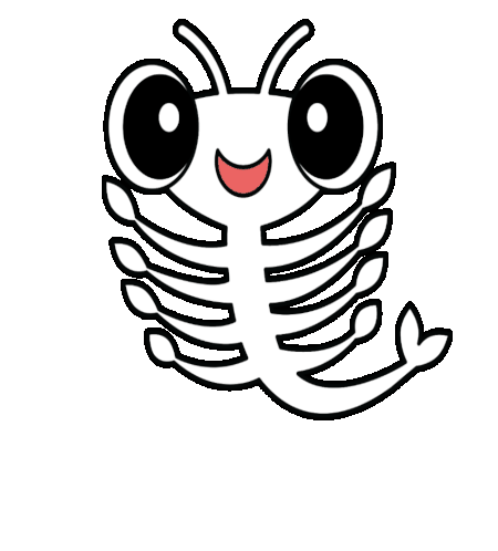 A cute, happy brine shrimp cartoon wiggles its body and smiles, bringing good vibes to any aquarium enthusiast.