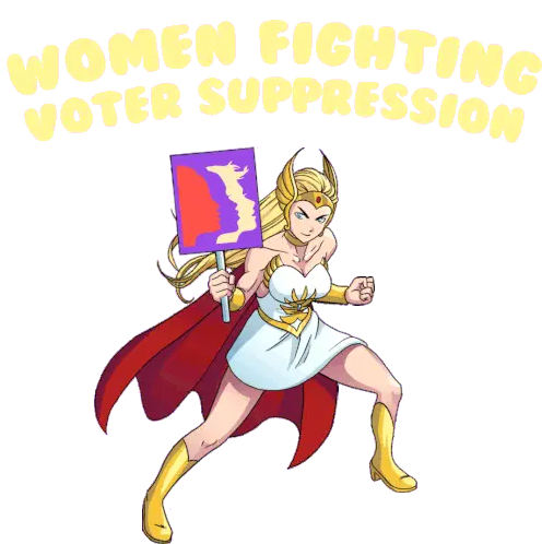 A flower bouquet displays messages for women's rights: 'Bring Back Jobs For Women', '$15 Minimum Wage', and 'Affordable Child Care'.