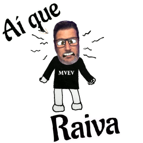 Brod Raiva cartoon sticker featuring an angry man with glasses and beard, exclaiming 'Ai que Raiva' (Oh, what anger).
