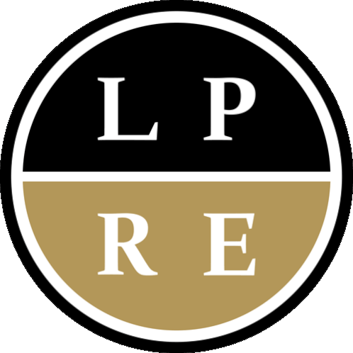 An animated logo for LPRE Real Estate Brokerage, featuring a black and gold oval with the letters 'LP' and 'RE' that subtly changes shape.