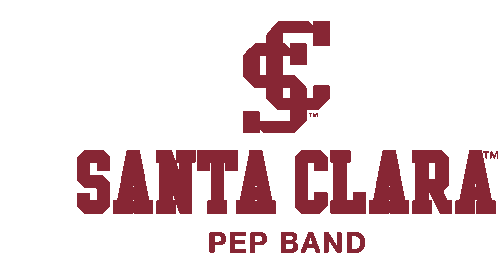 Official logo for the Santa Clara University Pep Band, featuring the SC monogram and 'Broncos' spirit.