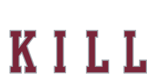 Animated sticker featuring the word 'KILL' in maroon and silver, representing a Santa Clara Broncos volleyball play.