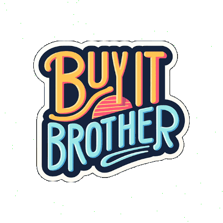 Animated sticker featuring the bold text 'BUY IT BROTHER' in a retro style, perfect for expressing enthusiasm.