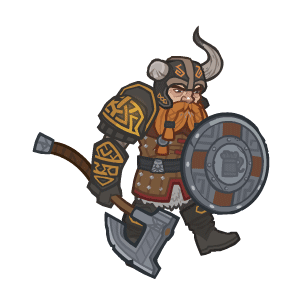 Bruenor Battlehammer, the iconic dwarf warrior, stands ready with his axe and shield, featuring an idle animation.