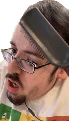 Ricky Berwick comically attempts to brush his hair with a comb, creating a funny and relatable moment.