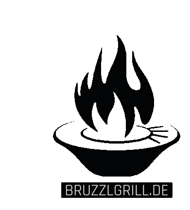 Dynamic black and white logo for Bruzzlgrill.de, featuring a stylized fire burning in a grill bowl.