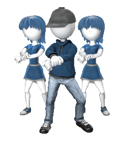 Bsc Azdar and two female figures perform a synchronized dance routine with energetic moves.