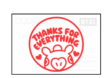 Mang, the BT21 character, is shown next to a large red stamp, appearing to have just used it on a document.