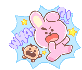 BT21's Cooky and Shooky react with shock and surprise, exclaiming 'WHAT?!' in this animated sticker.