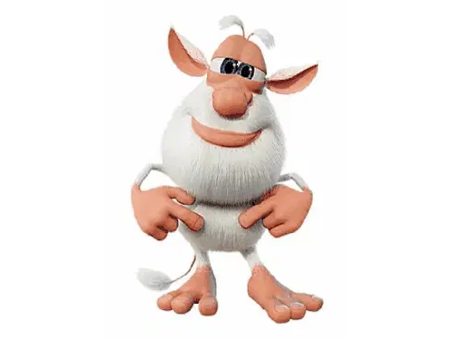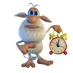 a cartoon character with a beard is holding a red alarm clock and pointing at it
