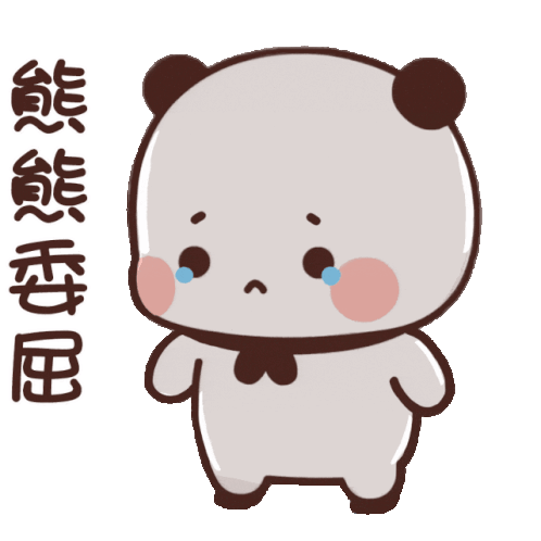 An animated sticker of Bubu Dudu, a sad panda bear with tears, accompanied by Chinese text '熊熊委屈' (Panda feeling wronged).