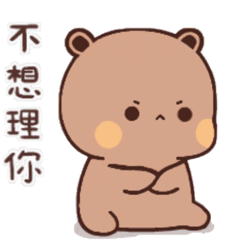 Bubu Dudu Sseeyall bear with crossed arms and a grumpy expression, indicating it's ignoring someone.