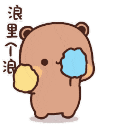 Bubu Dudu bear enjoying fluffy yellow and blue treats with 'Wave after wave' text.
