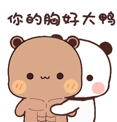 Bubududu bears share a muscular hug, with a playful Chinese caption about a big chest.