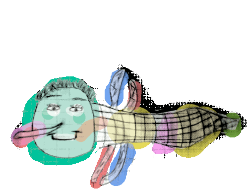 An abstract, colorful insect-like creature with large wings, animated and flying gracefully.