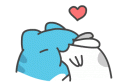 Bugcat Capoo, the blue cat, and Tutu, the white rabbit, share a sweet kiss, showing affection.