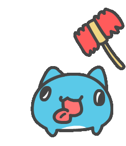 Bugcat Capoo, the blue cat character, looks silly as a hammer is about to hit its head.
