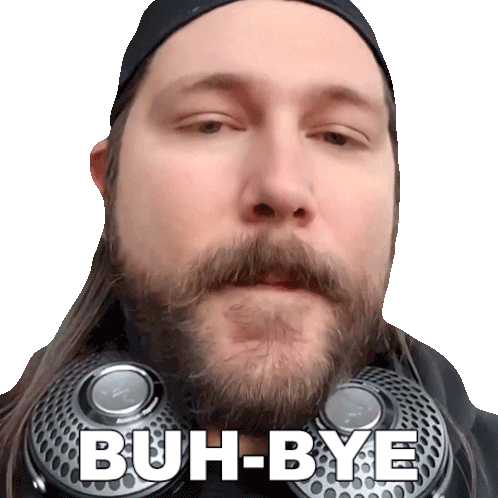 Michael Kupris, wearing a cap and headphones, looks at the camera and says 'Buh-Bye' with on-screen text.